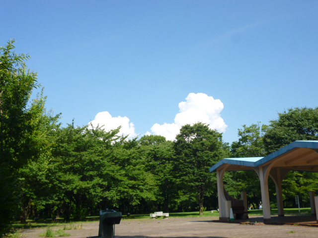 空には、入道雲(ピクニック広場から松本空港側)