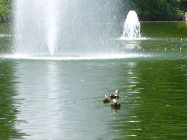 同じく池には、鴨が飛来