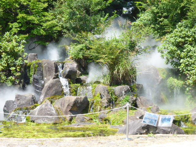 信州スカイパークには、秋の気配? ターミナルゾーンの滝には、ススキの穂