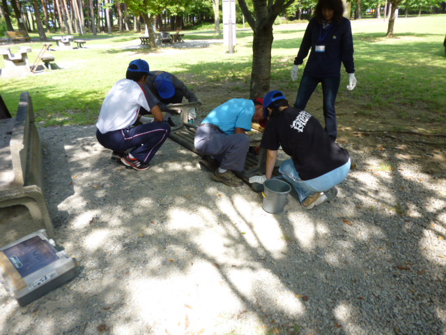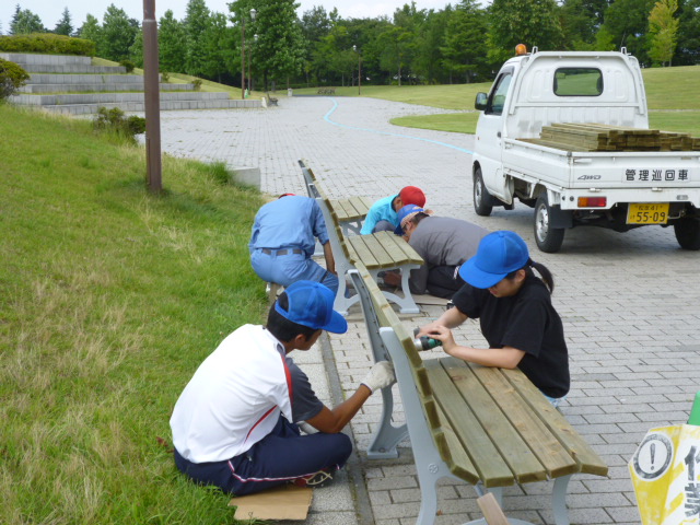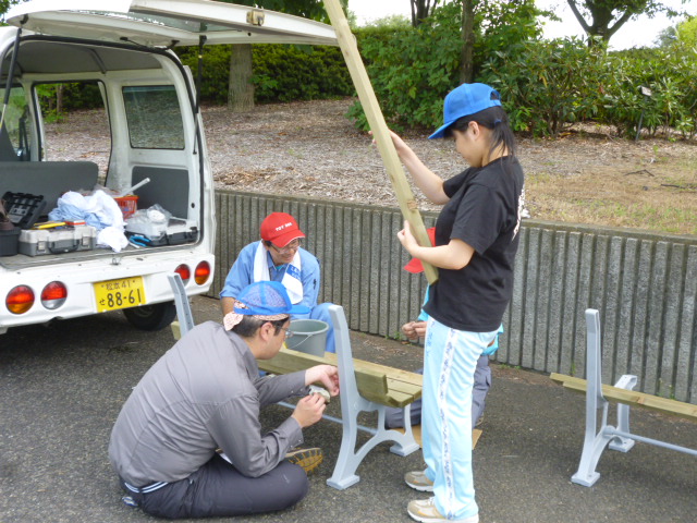 あとは、園路沿いのベンチもお色直しと板の交換