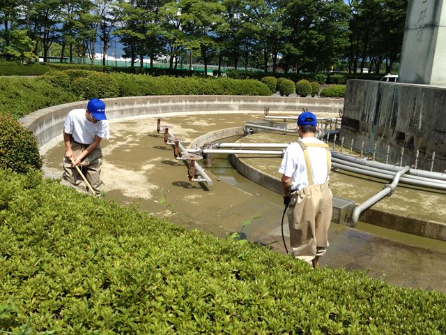 噴水清掃は骨の折れる仕事ですが、スタッフの指導の下、真面目に根気よく行ってくれました。