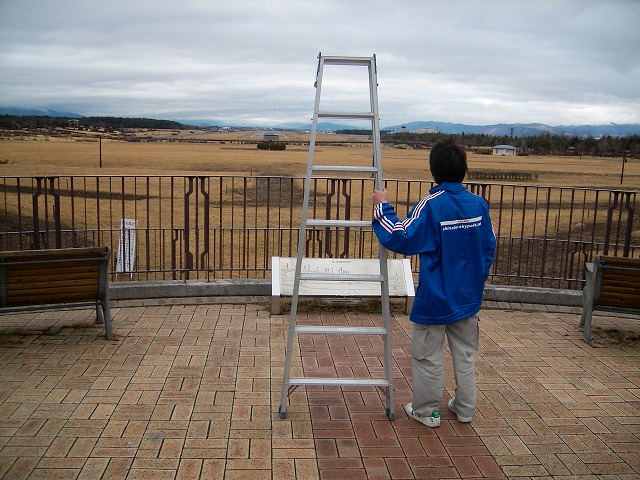 脚立を手に呆然とたたず後ろ姿は何とも言えない雰囲気をかもし出しています。
