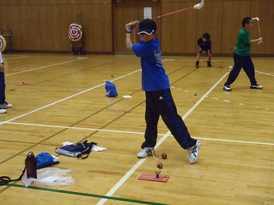 体育館では、スナッグゴルフ チャンスボール フロカーなど珍しいスポーツを