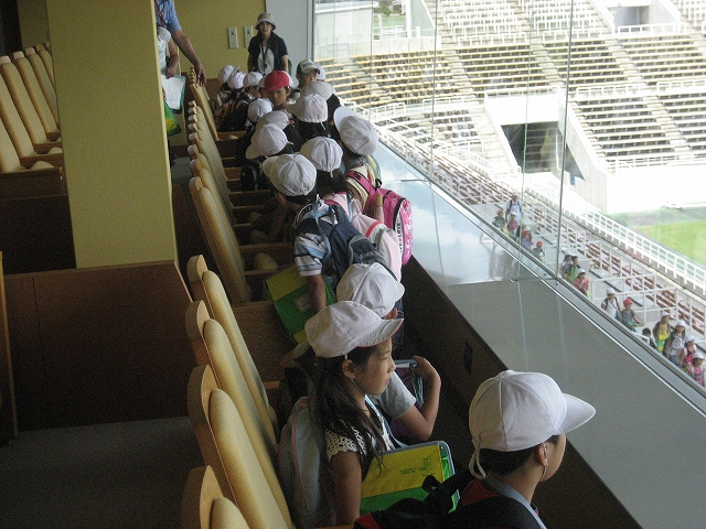 上の写真は現在のアルウィン上空です。 台風9号は熱帯低気圧になった模様ですが、 地方によってはまだまだ雨に対する警戒が必要なようです。 みなさんもニュースや天気予報などで、情報をチェックしてください。 ところで.... 9月になってここアルウィンには、毎日のように小学生のみなさんがやってきます。 そうです、みなさん社会見学でアルウィンに訪れるのです。 社会見学では普段は入れないようなエリアを見てもらっています。 たとえば、選手ロッカーやアップルームとか...。 たとえば、ピッチとか...。 たとえば、記者席とか...。 そして、一番人気は...4階観覧席!またの名をVIPルーム!! ここは、なかなか入ることができないエリアで、スタジアムを一望できるので 大変人気があります。 小学生のみなさんも、ここでは興奮気味です。 私もたまに案内係になることがありますが、小学生のみなさんが 興奮しているのを見ると「ふふふふ...」とほくそ笑みます。 これから見学に来るみなさんは楽しみしていてくださいね。 お待ちしています。 りんぐ