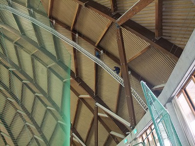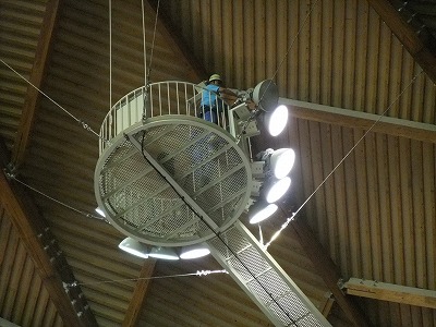 昨日今日とやまびこドームの天井照明の交換作業を行いました。