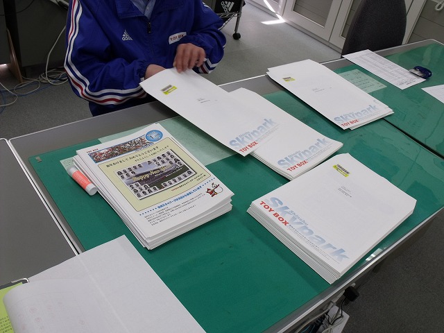 毎月下旬にスカイパークの事務所で行われる作業・・・・ それは・・・ 「スカイパーク通信」の発送です! みんなで手分けをしてやっています。 繰り返し同じ事をしていると、腕とか痛くなりませんか?僕はなります、特に肘が・・・。 スカイパークの各施設に置いてある他、関係諸所にこうして発送しております。 発送するスカイパーク通信は平成23年1月号と新年第1号ですが、この作業的には今年最後の発送・・・・なんだか複雑なようで、そうでないような?? 何はともあれ、多くの方に読んでいただき、スカイパークにお越しいただければ嬉しく思います。 X’masも終わり、年末ムードも加速するこの頃ですが、みなさま風邪などひかないようお気をつけてください。 以上ぱんだ副班長でした。