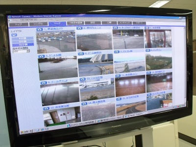 事務所のモニターで状況確認をしています