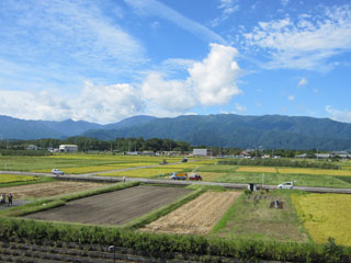スカイパークは朝から良いお天気です。 今年のシルバーウィークは台風の接近などでなかなかお天気に恵まれませんでしたが、 最終日の今日は朝からきれいな青空が広がっています。 周辺の田んぼは嬉しい収穫の時期を迎えています。 雨続きでなかなか収穫作業ができなかった農家の皆さんにとっては 待ちに待った“稲刈り日和”です。 公園内も朝から賑わっています(*^ ^*) アルウィンではサッカーJ2リーグ第33節松本山雅FC vs 清水エスパルス戦が この後14:00KICK OFFの予定ですが、 会場周辺には既にたくさんのファン・サポーターの皆さんが集まってきています。 本日は、公園内各エリア・駐車場、また周辺道路などが大変混み合っています。 これからお出かけの皆様には、時間等に余裕を持ってお越しくださいますよう お願い申し上げます。 気温も上がってきていますので、熱中症対策もお忘れなく! Alan