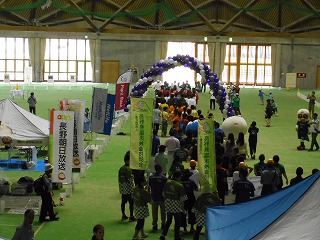 体育館にて、『やまびこオープンバドミントンレディース大会』