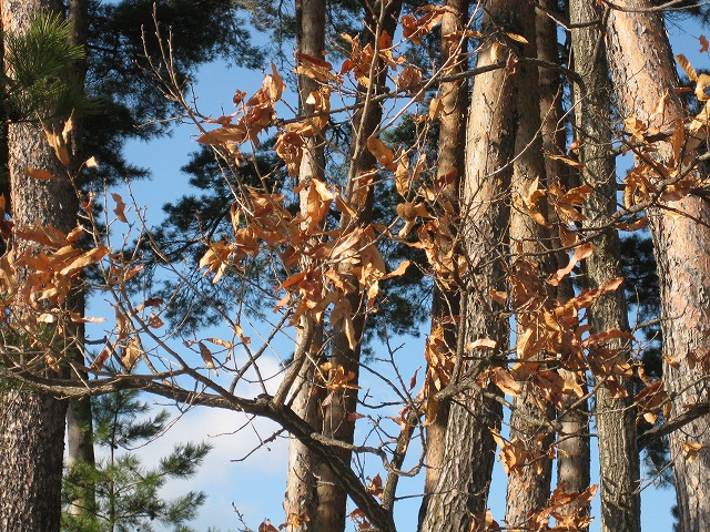 そんな中、園内の樹木を見ていると、枯葉が目にとまりました。