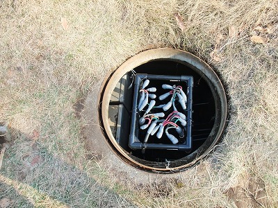 ケーブル固定用のパイプを組み、ハンドホール内に設置し、