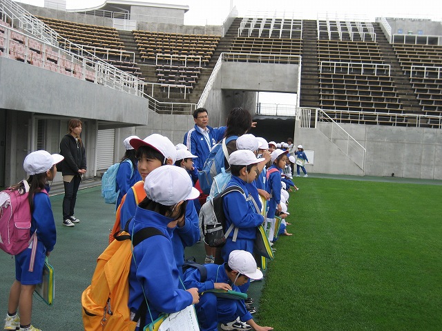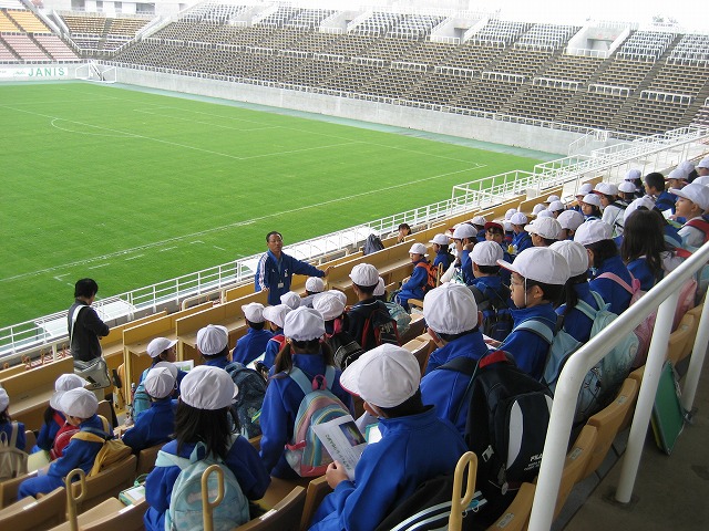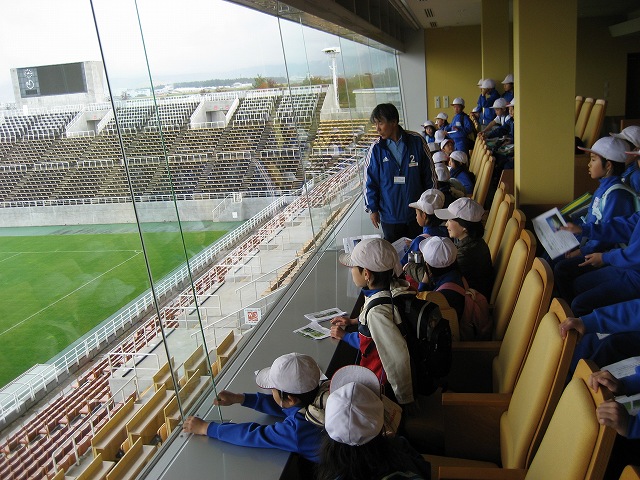 お弁当のあと、3つのグループに分かれて、アルウィンの中を見学してもらいました。特別観覧室で、サッカーの有名な監督が座った席についたラッキーな人は誰だったでしょうか
