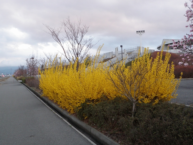 これはアルウィン北側のレンギョウです!ボクは毎朝このレンギョウを見ながら出勤します。交通事故にならないのが不思議なくらいみとれます!