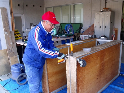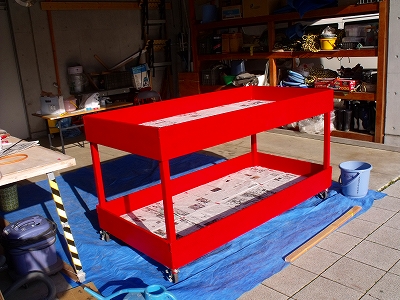 などの収納箱もお化粧直しをしていました。中側はピンク色に仕上がるそうです。