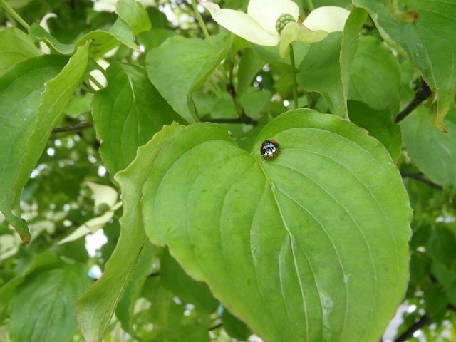 そしてヤマボウシの葉の上にはテントウムシが止まっていました(*^ ^*)