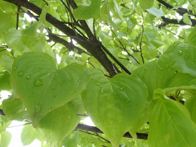 葉には雨の名残の雫が付いています(o^ ^o)