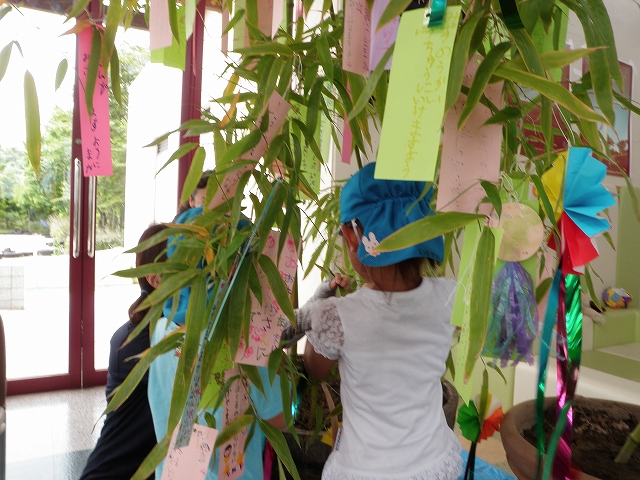 こんにちは。 今日は南管理棟ロビーで二子保育園の園児による七夕の飾りつけが行われました。 保育園でみなさんが作成してきてくれたものを飾り付けました。 自分で作った飾りを実際に飾ることをとてもよろこんで飾っていました。 終わった後は、みんなで観賞会を行いました。 とてもにぎやかな雰囲気になりましたので、ぜひ見に来てください。 二子保育園の皆さんありがとうございました。 コシヒカリ