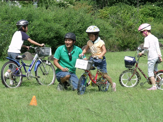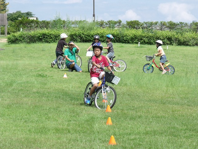 コーンを使って障害物をよけていったりと子どもたちはとても楽しそうに自転車に乗っていました。
