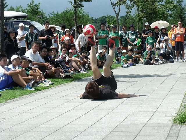 フリースタイルフットボーラーの【NORI】さんです。リフティングしているところなのですが・・