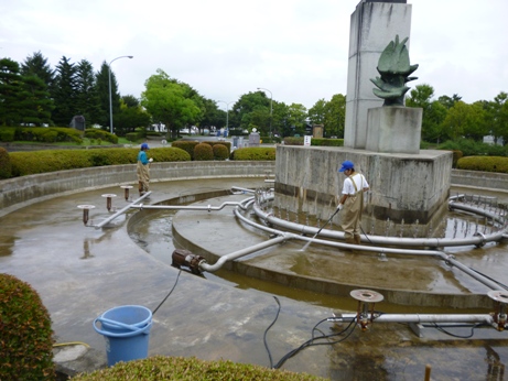 9月1日は、波田中学校2年生の2名の生徒に陸上競技場の噴水清掃を体験していただきました。