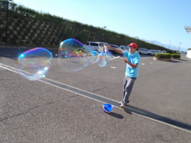 こちらはただのシャボン玉ではなく【割れにくいシャボン玉】を使用します。