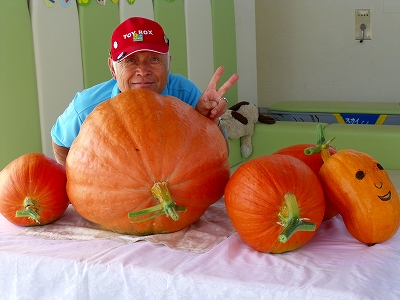 瓜実顔のカボチャさんには、『ノッポ』さんの顔を書いてしまいました。
