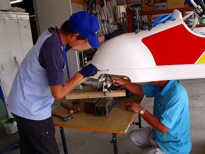 スタッフの中沢さんは、まるで自動車修理工場や、