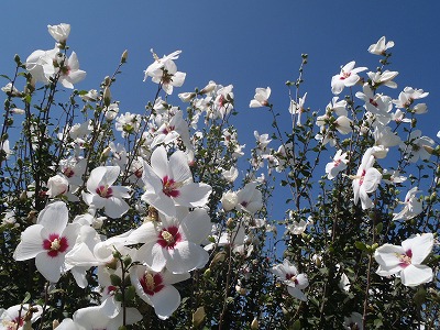 ムクゲのように咲いている花は、
