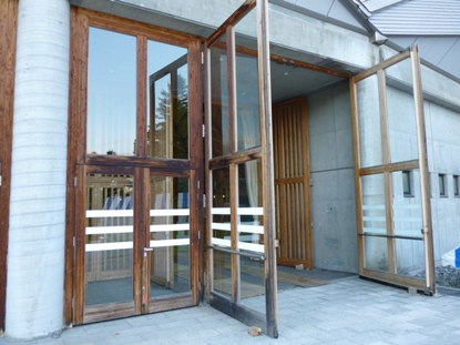 信州スカイパーク やまびこドームには、大型トラックでも出入りできる扉があります。