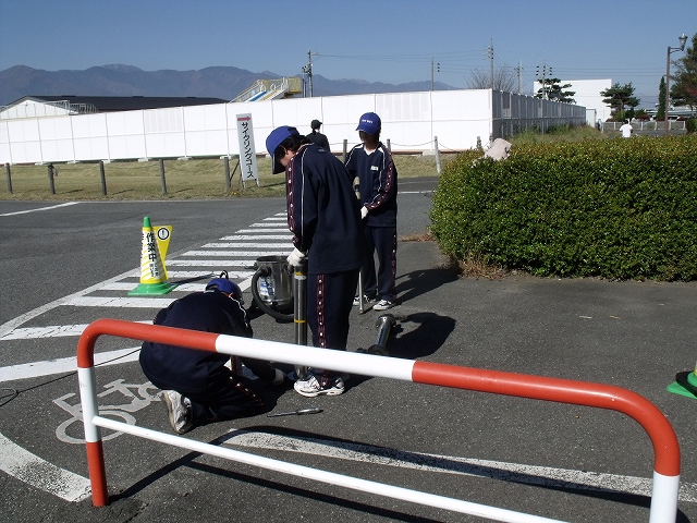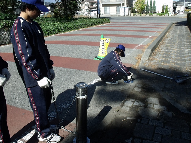 ジュニアインターンシップ3日目の今日はターミナルゾーンのバリカー(車止め)清掃を