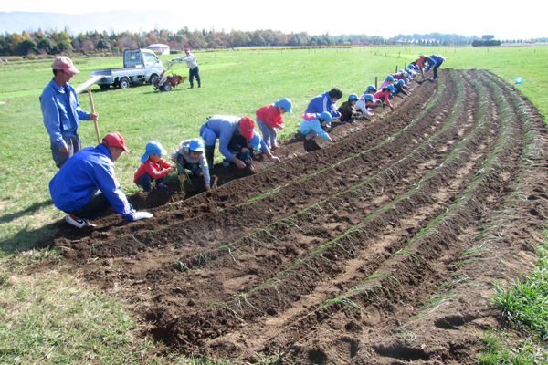 みんな、ワイワイと楽しく綺麗に植えてくれました。