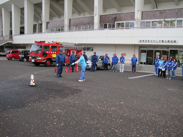 その他にも、消火器や屋内消火栓の取扱訓練を実施し、消防署職員の方に注意事項などを教えていただきながら、実際放水をしてみました。