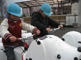 飾り付けのお礼に、おもしろ自転車でいっしょにあそびました。みんなすごく元気!
