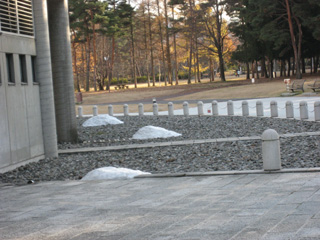 11月30日 きょうは秋晴れ でもたまに吹く風は寒かった 明日からは12月 いよいよ本格的な冬の到来です そんな公園内の風景をご紹介します ユリノキの葉っぱがなくなりました ピラカンサの実が真っ赤 落ち葉のプールで遊ぶ兄弟 落ち葉のプールで記念撮影 先日降った雪がやまびこドームの北側にまだ残っていました 体育館では 長野県高等学校新人体育大会バスケットボール競技 やまびこドーム 庭球場では大会も開催されました スカイパークも冬の準備にはいっています mokumoku