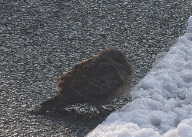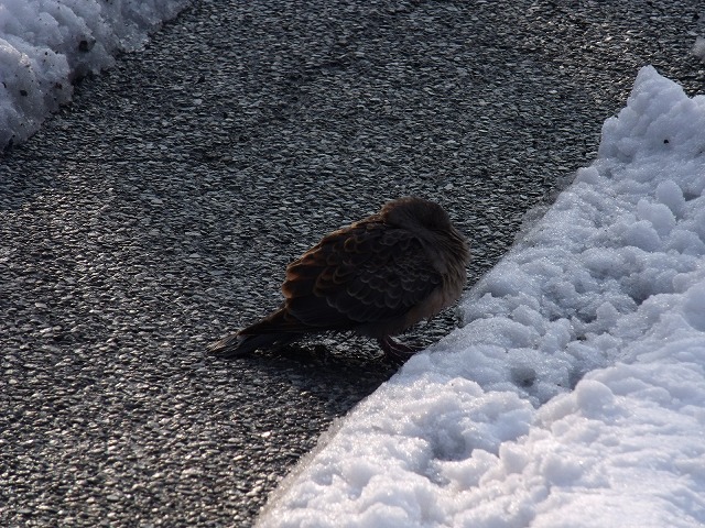 本日除雪作業中、1羽の鳥がじ~っとしているのを見かけました。