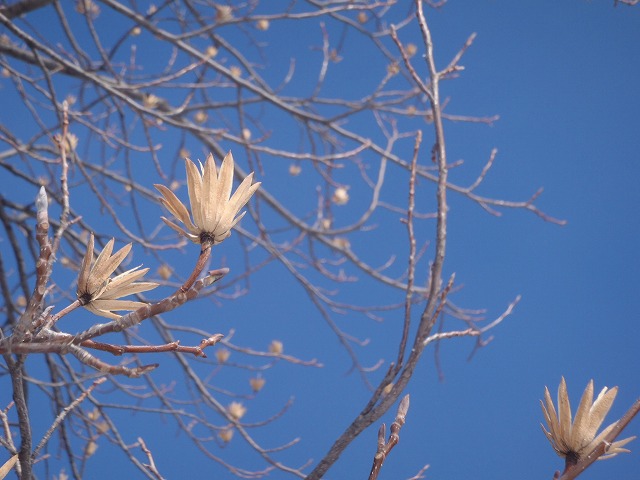 現在ユリノキの枝先にはこの様な薄茶色の実が付いています。