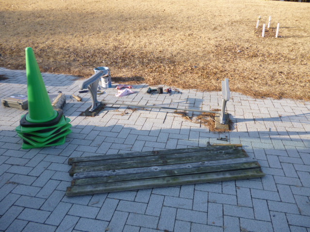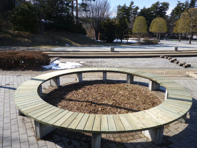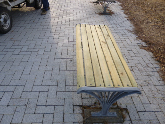 ターミナルゾーンの円形ベンチの板部分を張替えた時の様子です。
