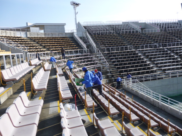 翌23日は、新メンバーが加わり、総合球技場アルウィンの整備行いしました。