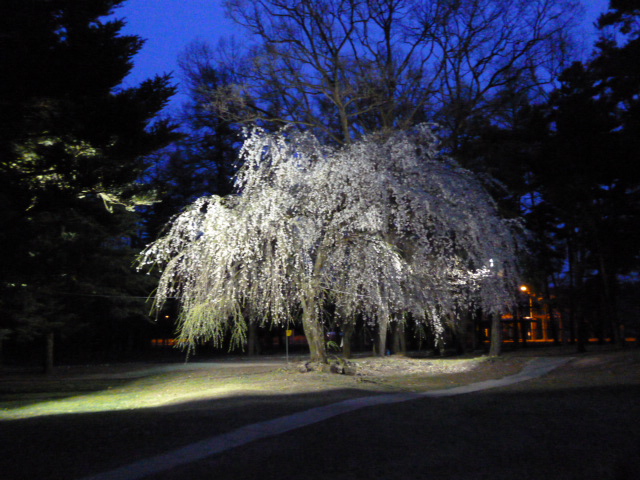 ライトアップは、例年通り競技スポーツゾーン やまびこ国体の森付近のシダレザクラです。
