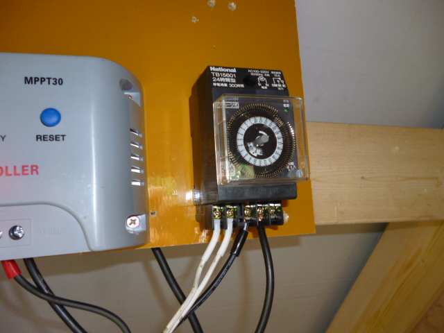 ソーラー発電による点灯は、午後7:30~9:00までの間で、バッテリーに蓄えた電力をできるだけ使用しています。