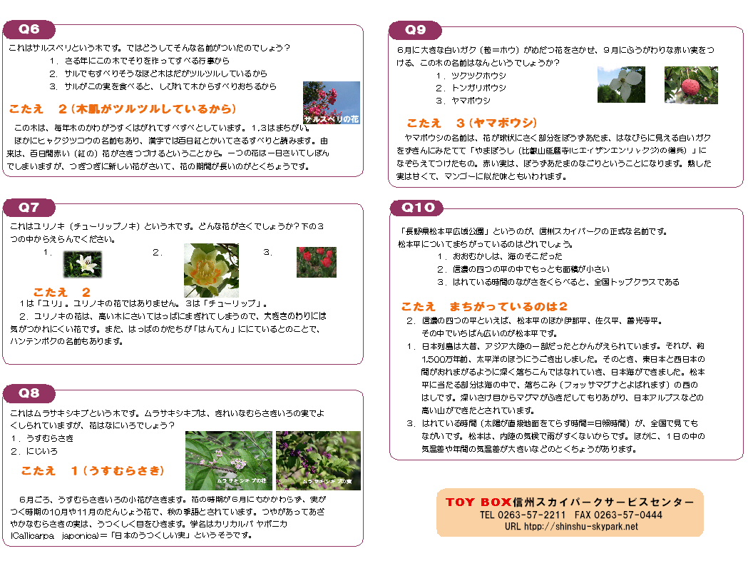 あまりこだわらず、スカイパーク・松本の動植物に関する豆知識などお待ちしています。