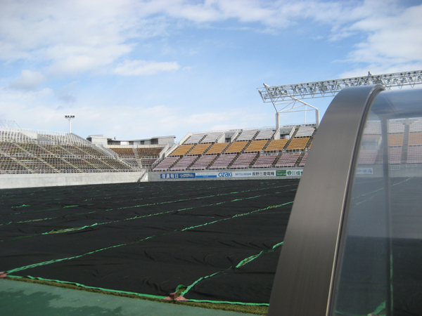 芝の青々したピッチではありませんが4月からの使用に備えてたいへん重要な作業です