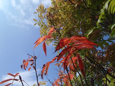 黄色やオレンジ色へと葉の色が変化していっています(o^ ^o)