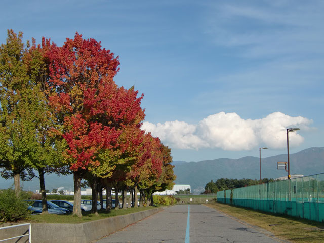 【競技スポーツゾーン】庭球場横のトウカエデ並木。