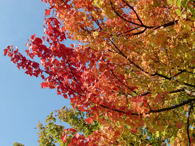 2週間前は緑だったユリノキの何本かは、きれいな黄色に変わっていました。
