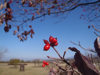 枝先に真っ赤な実を残したままになっています。