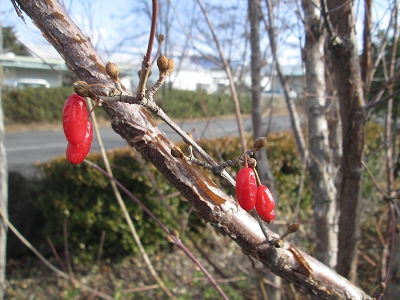 こちらはみどりのプロムナードゾーンにあるサンシュユの実です。