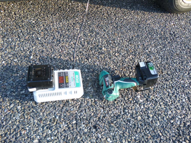 バッテリー式の工具を充電しながらの作業です。