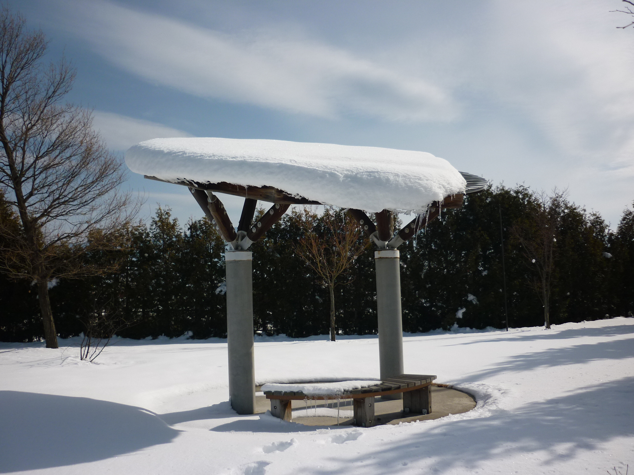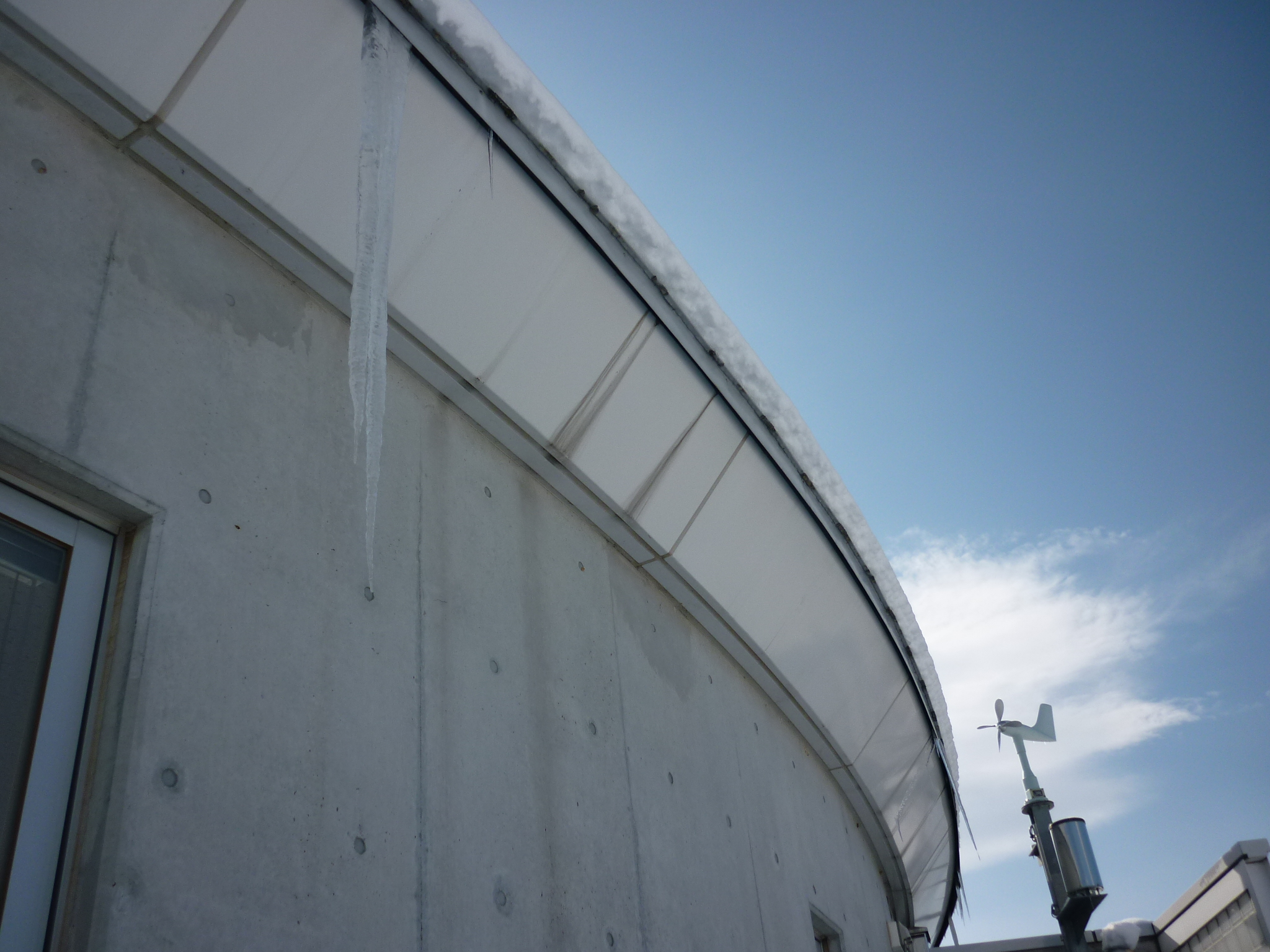 ビックリするようなつららがふれあい広場の休憩棟の屋根にありました。