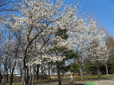 マレットコースにはコブシの花も清楚に